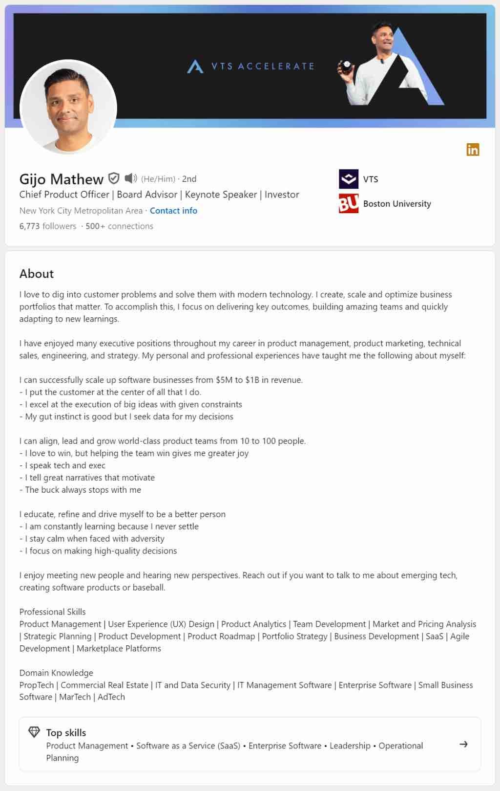 Take the profile above as an example. It’s clear, keyword-rich, and intentional. From the headline to the “About” section, you immediately know who this person is, what he does, and the value he brings. The language aligns with how decision-makers search, and the profile tells a compelling story without trying too hard.